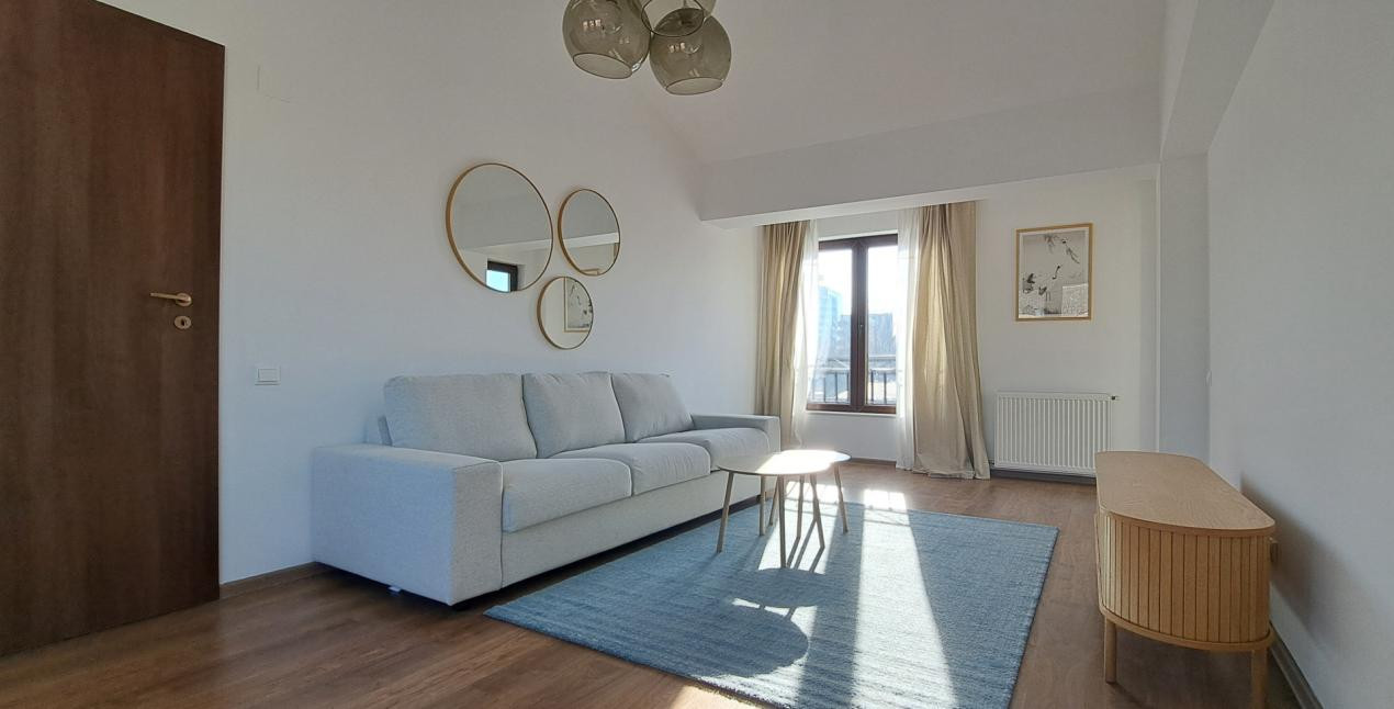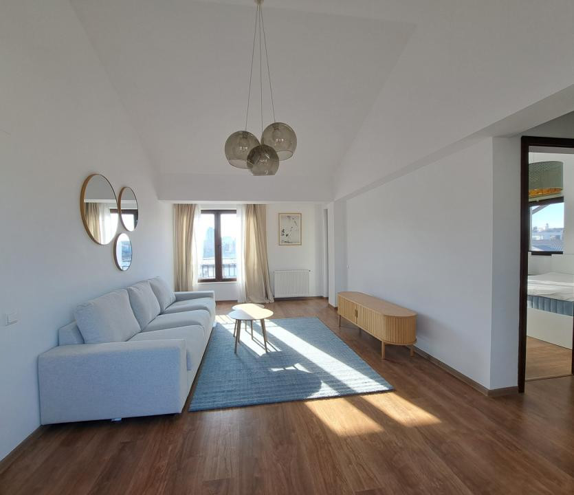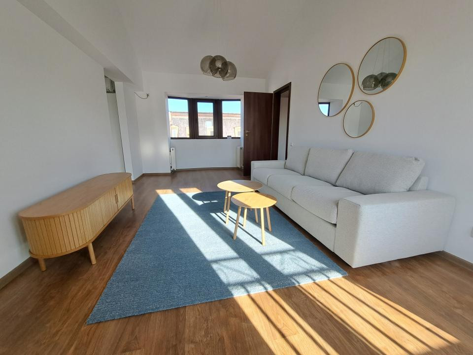 - Living cu dubla orientare, nordica si sudica, cu masuta si canapea;